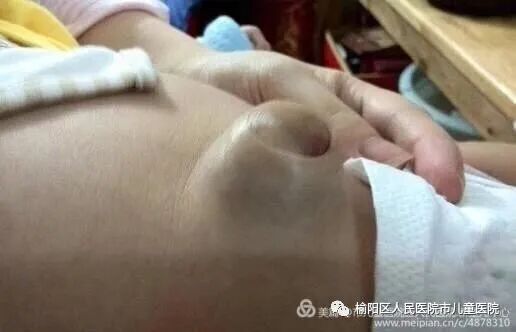 常见于早产儿,由于腹壁的组织发育不成熟,腹壁薄,腹腔内容物如肠管或大网膜由脐环处凸出到皮下形成脐疝。哭闹时可增大,安静睡眠后可还纳,属于新生儿常见的一种预后良好的先天性发育缺陷。多数婴儿在1~2岁随腹壁组织的发育成熟而自愈。如脐疝不能还纳或者宝宝哭闹明显,及时去医院就诊,防止疝嵌顿。