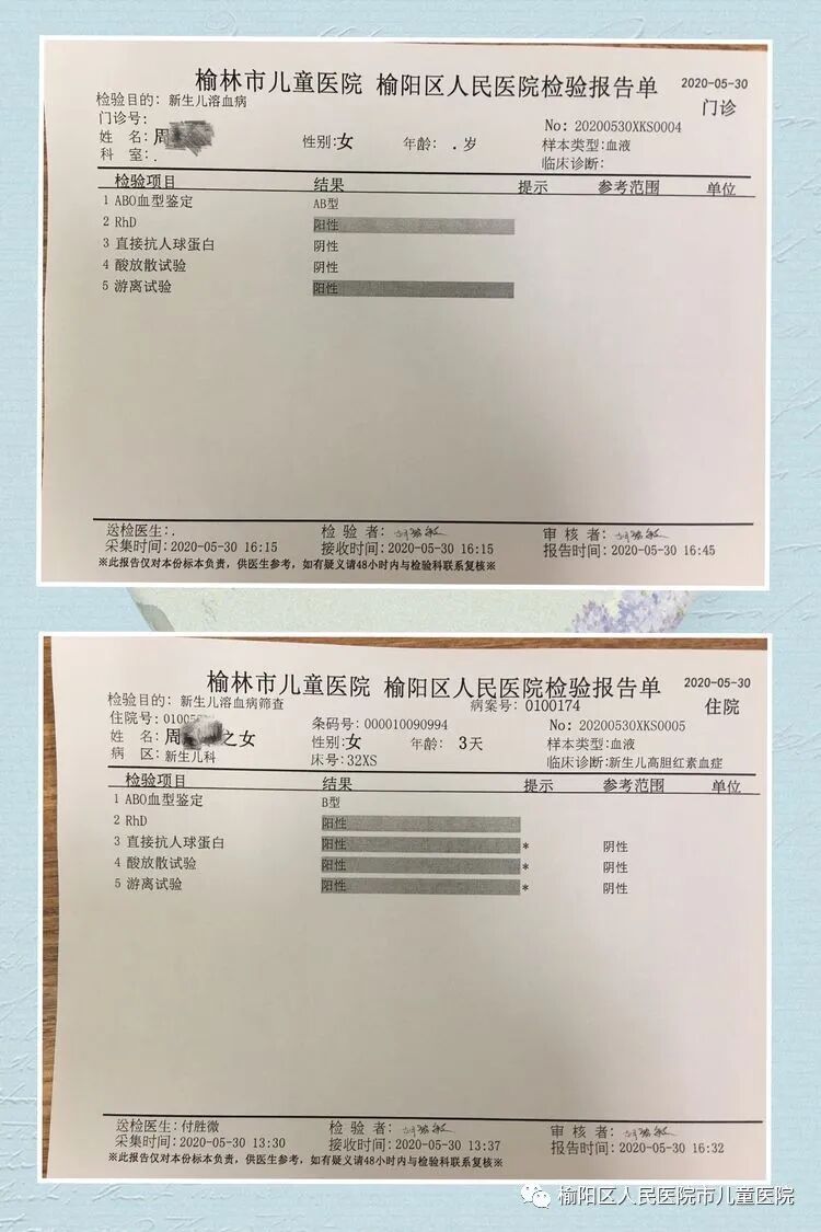 如此高值的胆红素水平患儿等不起,临床更是不能等!换血势在必行!原本休假的马仕银主任得知情况后立马赶来医院参与实验,首先进行抗体筛查试验:周某 1号3号抗筛阳性,周某之女 1号阳性3号弱阳性,经查对分析,其血型抗体可能型为E、c 、N,其中E的可能性更大,E溶血的机率更多。当机立断,立即联系车辆将母女俩血液送往榆林市中心血站进行Rh血型分型鉴定,证实周某为RhE阴性,周某之女为RhE阳性。最终确定周某之女为罕见的母女RhE血型不合溶血病!