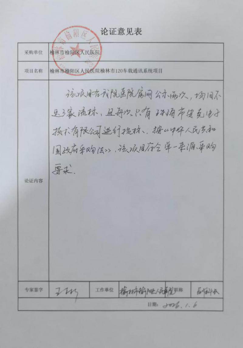 榆林市榆阳区人民医院 榆林市儿童医院 榆林市120车载通讯系统单一来源采购 招标公告